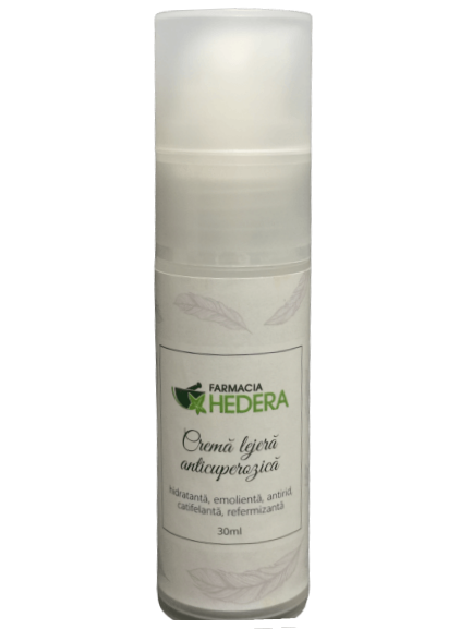 Crema lejeră anticuperozică are proprietăţi antirid, este hidratantă, emolientă, catifelantă şi refermizantă.