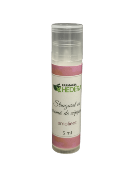 Compoziţie: *Unt de cacao, *ulei de cocos, ceară de albine, vitamina E, extract de căpşuni